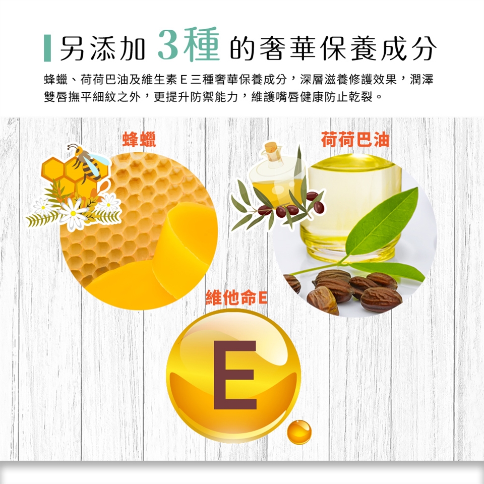 ●唇蜜含有白色粒狀物為乳木果油屬正常現象,遇唇溫加輕輕按摩即融化。