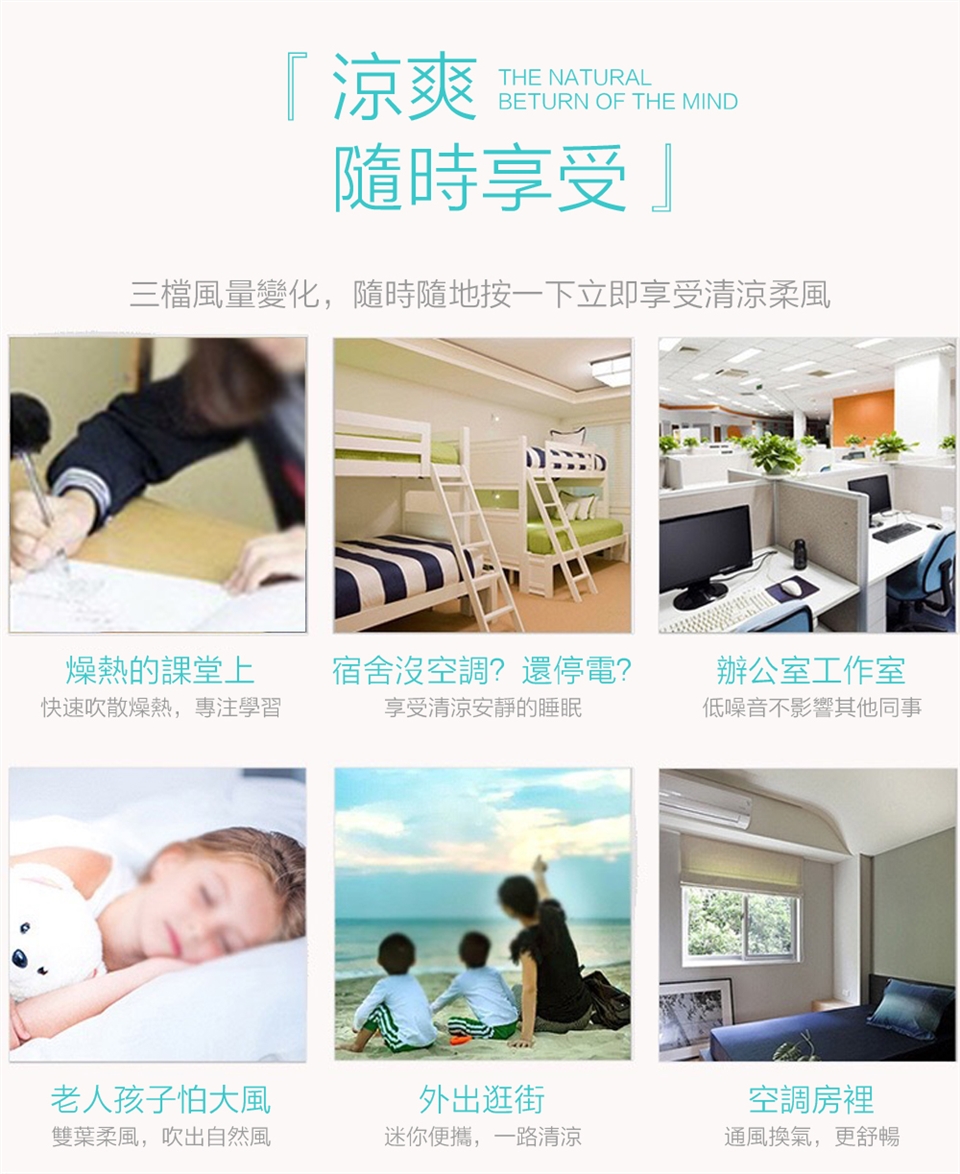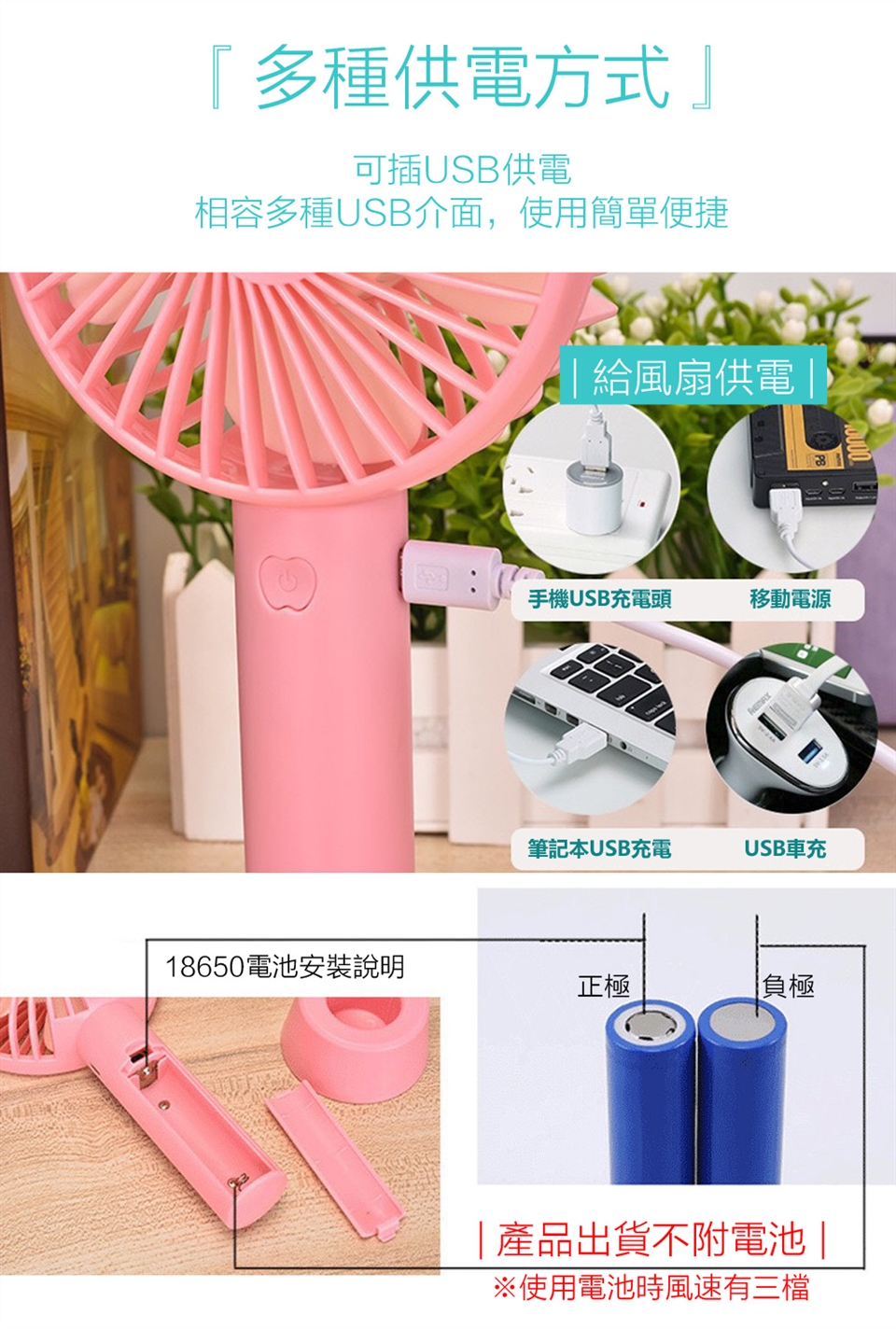 連接風扇與電腦USB埠或是行動電源、旅充(皆需另購)