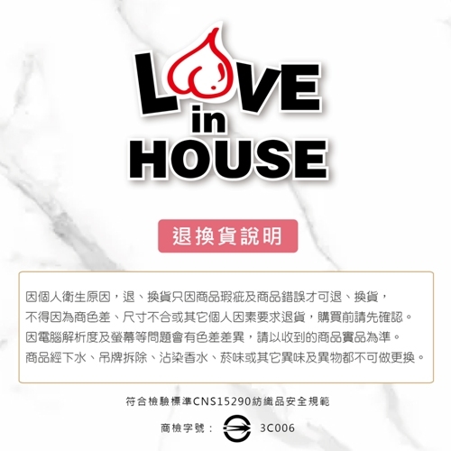 不同於Love in House現有庫存商品的味道即視為異味,Love in House擁有最後解釋、定義異味的權力,請務必認同再下單!