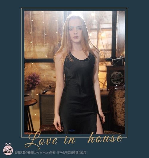 【愛愛屋】俐落修身冰絲高叉連身露背裙