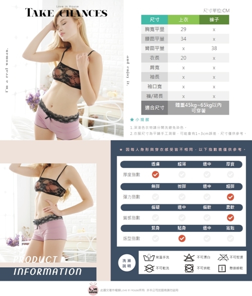 1.請使用內衣專用清潔劑清洗,清洗後輕柔將水擠乾,勿用烘乾機 。