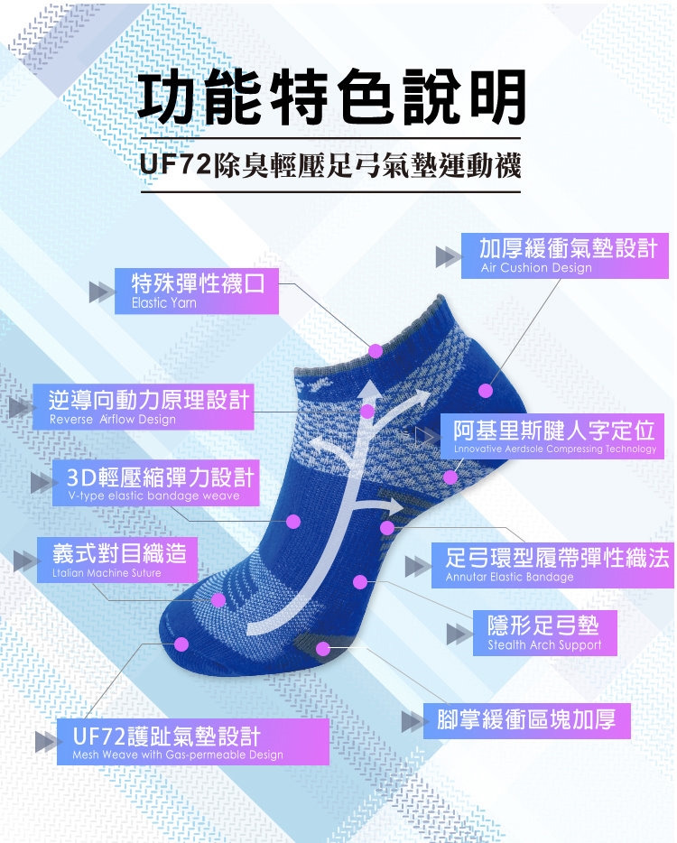 當除臭抗菌只是基本配備 品名: uf72除臭輕壓足弓氣墊運動襪