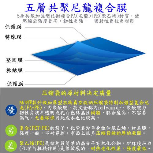 ■採用5層共聚加強型技術複合PA(尼龍)+PE(聚乙烯)材質,使壓縮袋強度更高,韌性更強,密封性更佳更耐用。