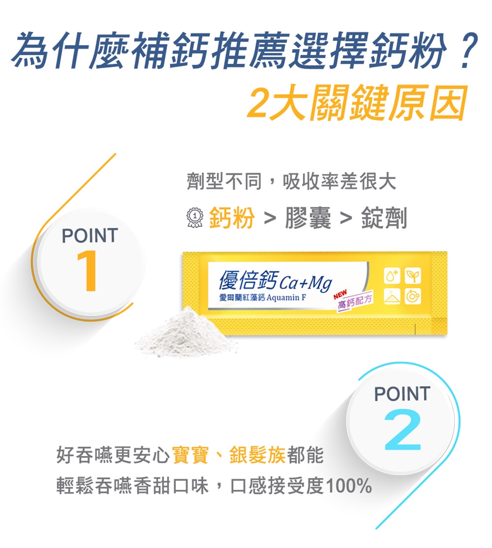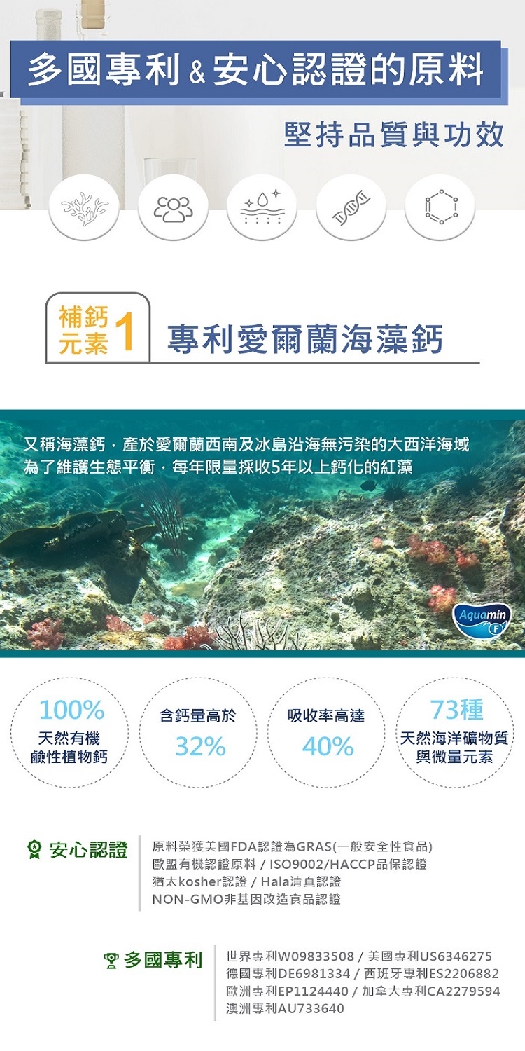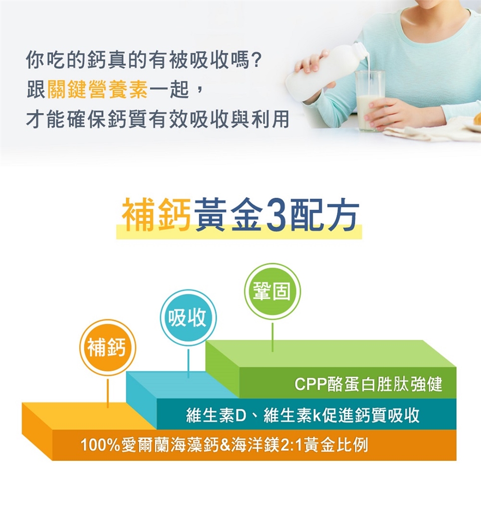 優質高鈣升級配方,選用專利愛爾蘭紅藻鈣,是攝取鈣質的最佳首選