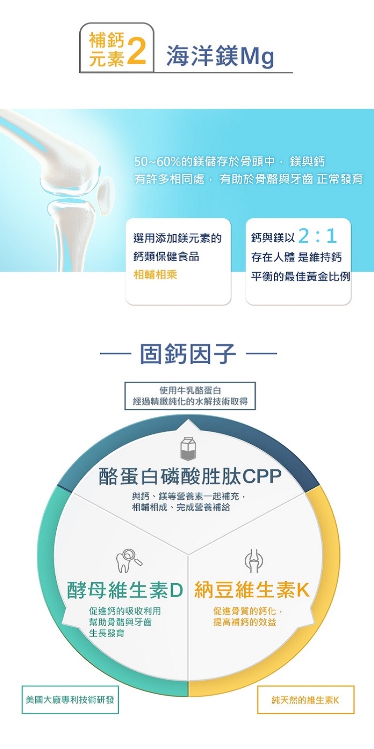 補鈣保健食品選擇天然純淨的海藻鈣粉,複方營養豐富,為你灌「鈣」滿滿活力!優倍鈣,以愛爾蘭海藻鈣、海洋鎂的2:1黃金比例製成,並搭配固鈣3要素-維生素D、維生素K、酪蛋白磷酸胜肽(CPP)等複方成分,幫助發育中的兒童、青少年及孕婦、銀髮族,有效提升鈣質吸收率,補鈣又固鈣!