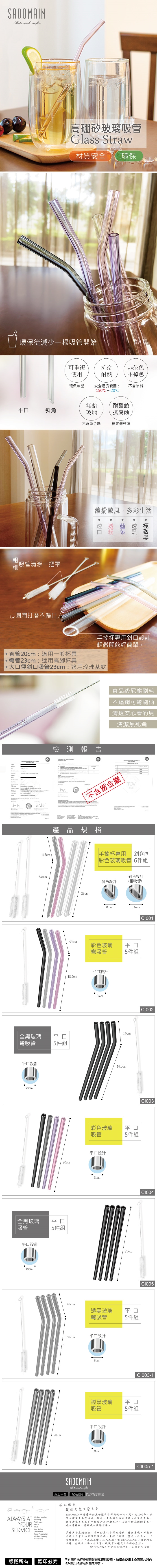仙德曼 SADOMAIN 全黑玻璃吸管(平口5件組20cm)