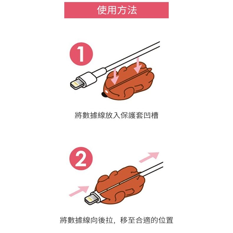 首先將數據線放入保護套凹槽,接著將數據線向後拉,移至合適的位置。