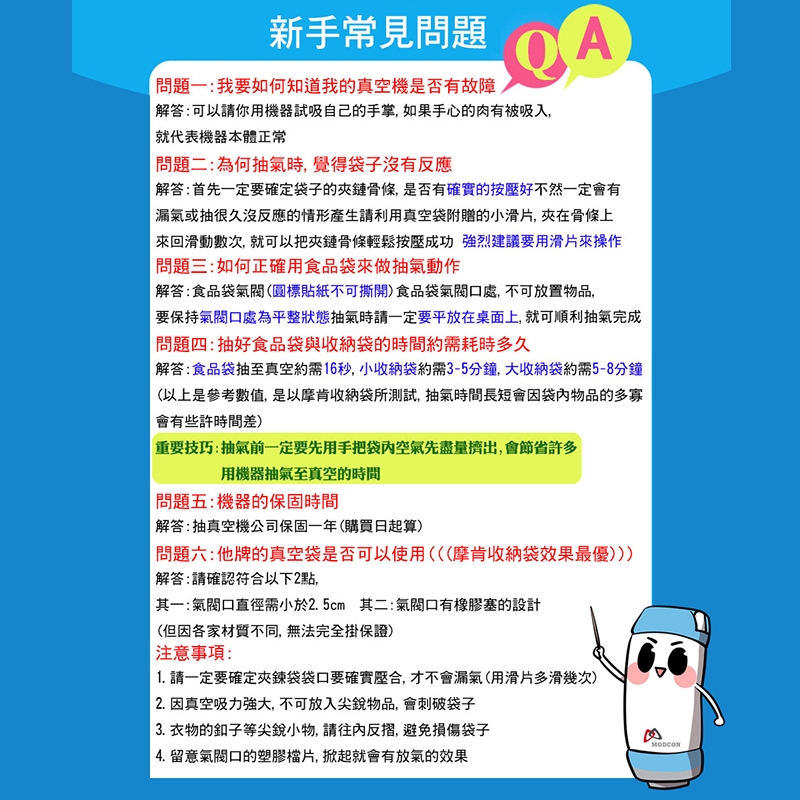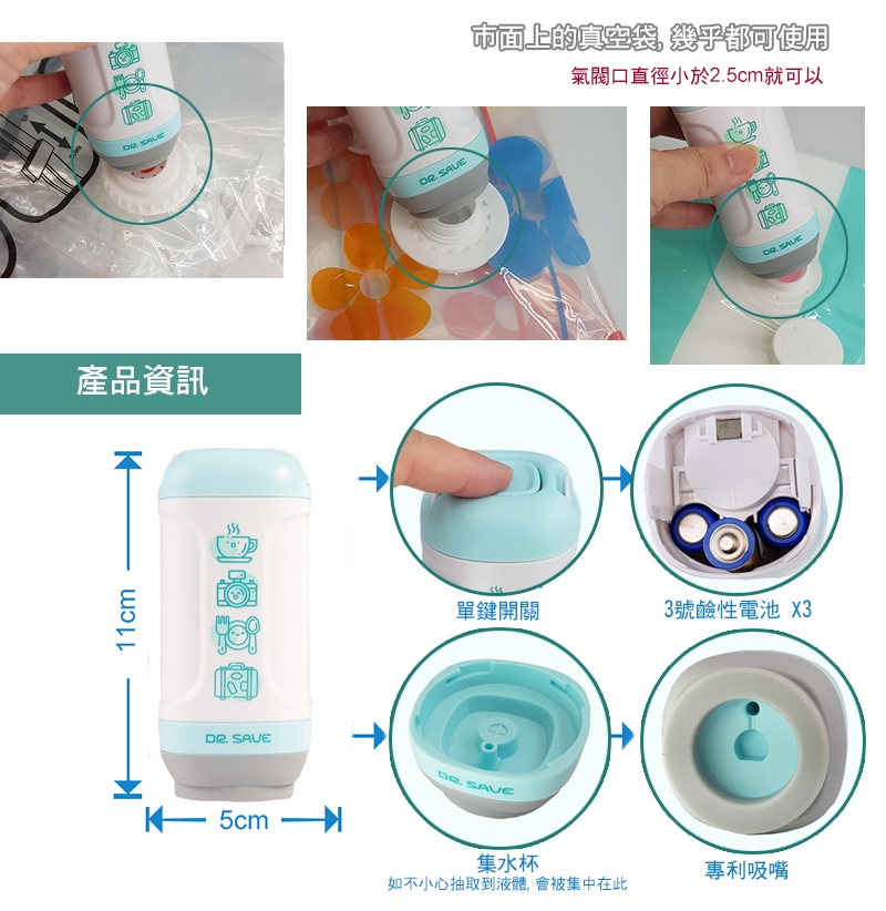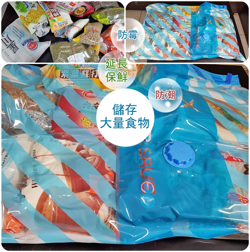 1.用真空機抽氣前,建議先將袋內多餘空氣用手擠壓的方式排去部分空氣,會節省許多抽氣時間。