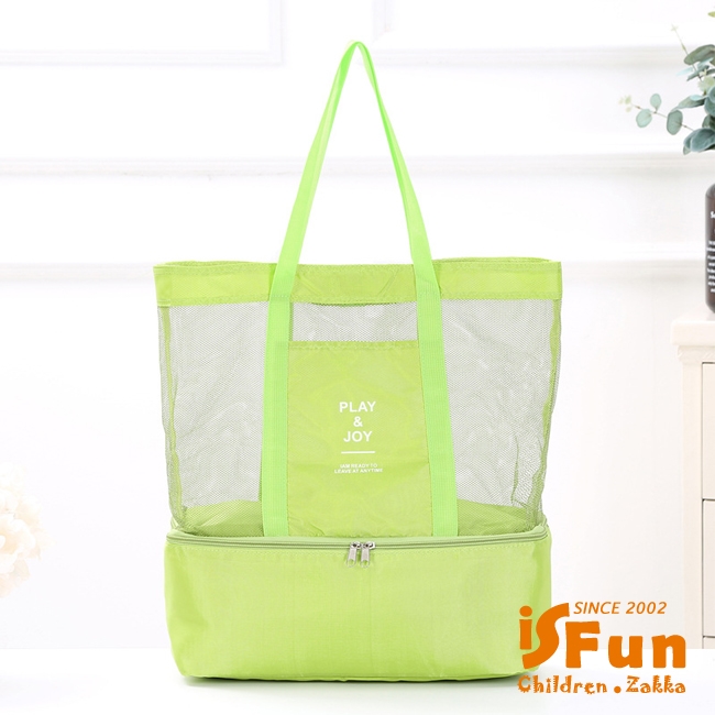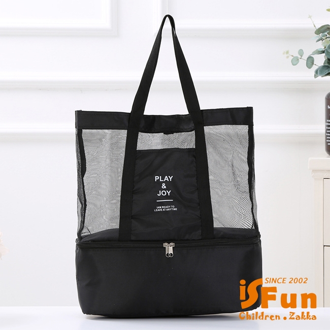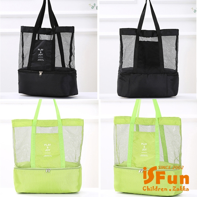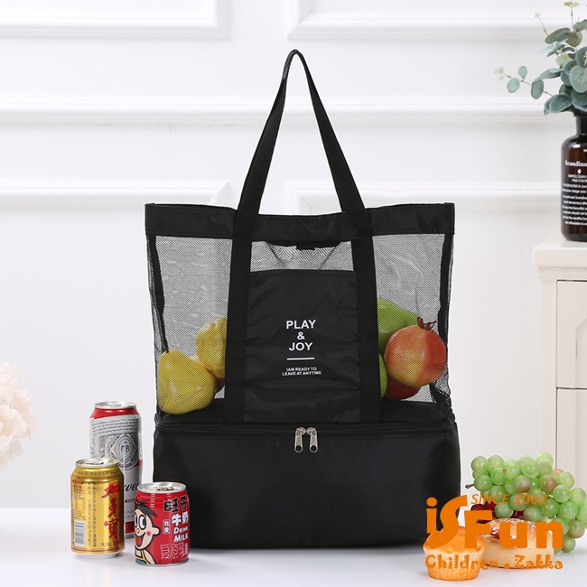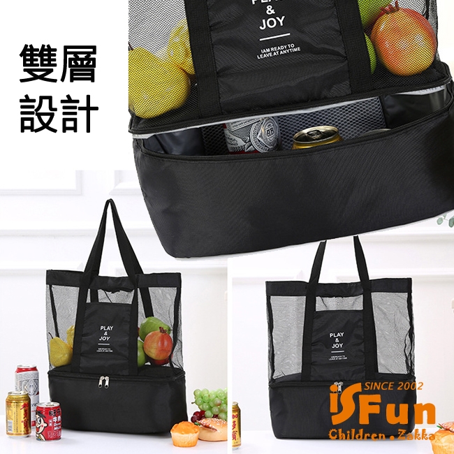 多功能大容量雙層野餐袋,上下分隔設計保冰保溫,時尚潮流可當一般外出袋,