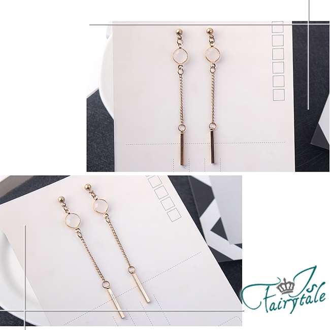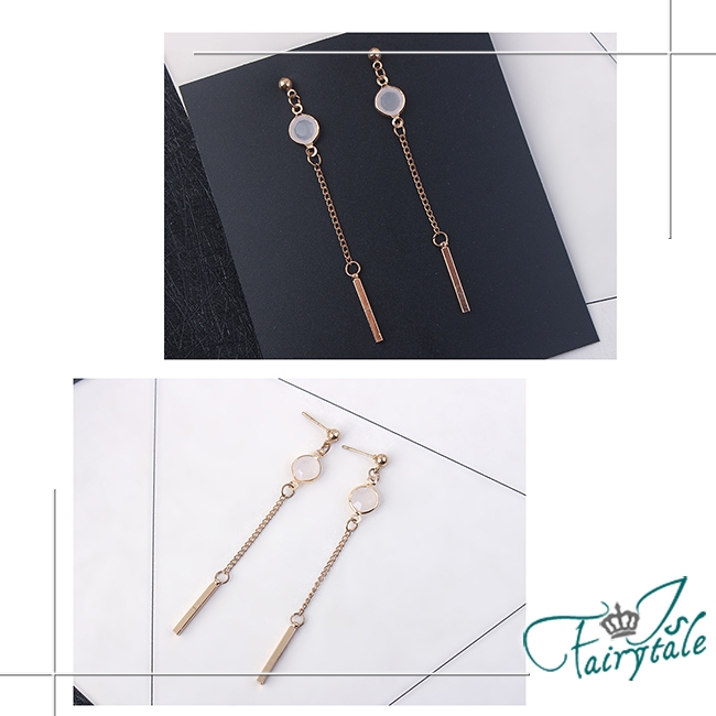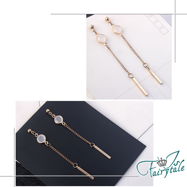 韓版極簡仿寶石設計風格,優雅長垂墜一字款式,