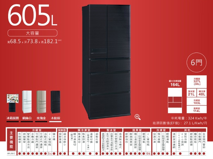 【MITSUBISHI 三菱】 日本原裝605L 六門變頻電冰箱 MR-JX61C