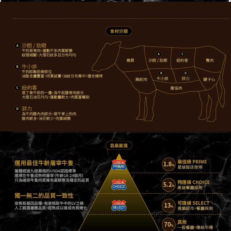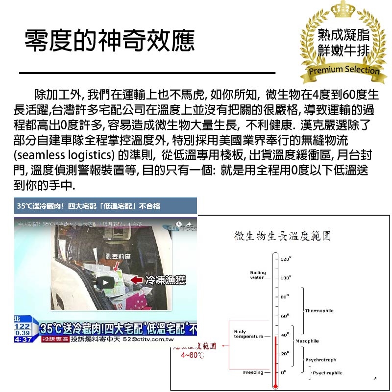 四、無任何添加及醃漬嫩化,最佳賞味熟度為5-7分熟,熟度愈高肉質愈有嚼勁.