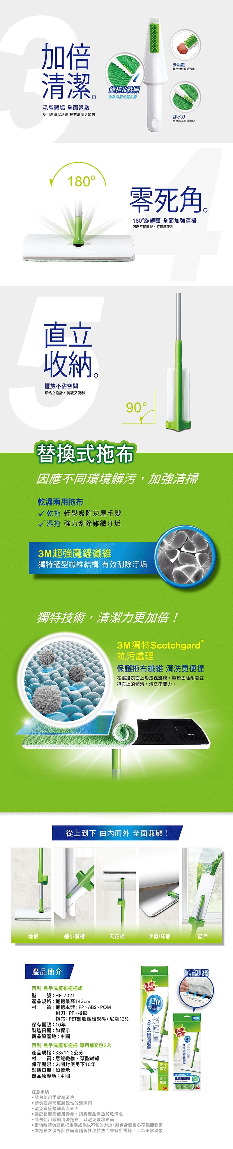 ◆【3M Scotchgard 抗汙處理】保護拖布纖維,清洗更便捷。