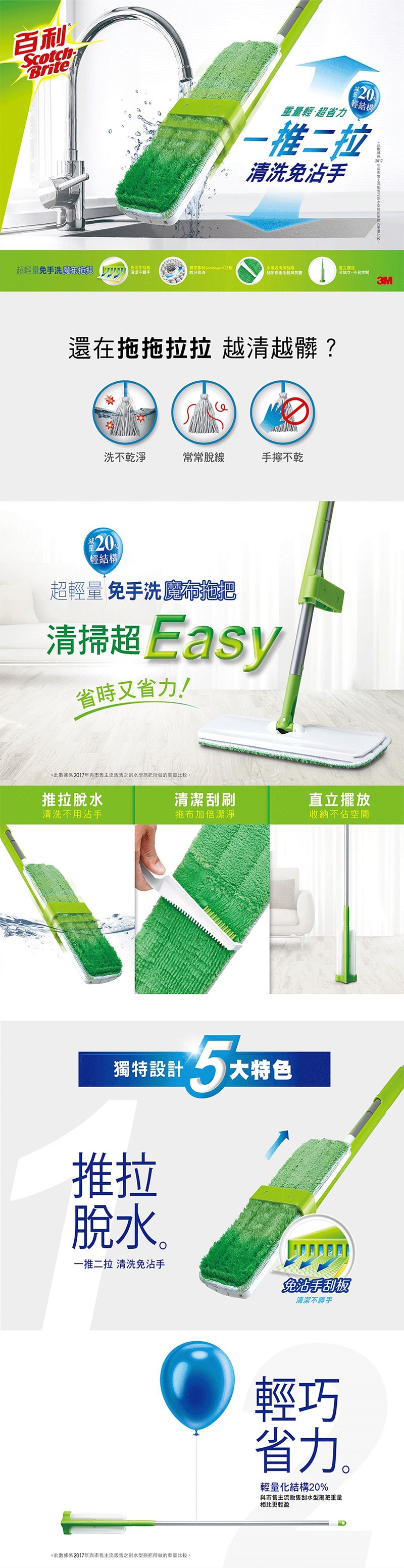3M 百利 免手洗魔布拖把