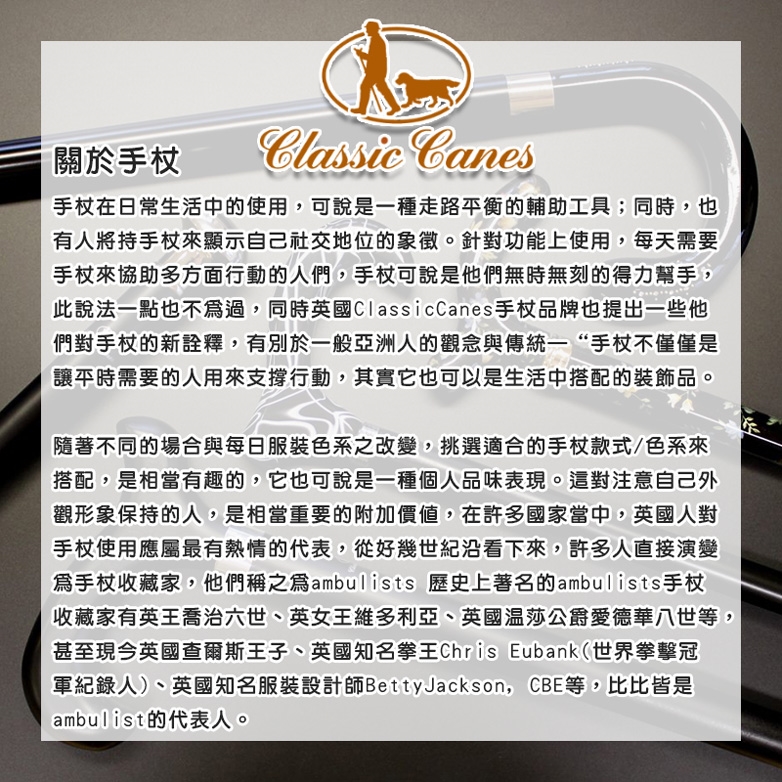 1. Classic Canes手杖僅為輔助工具而非醫療用品。