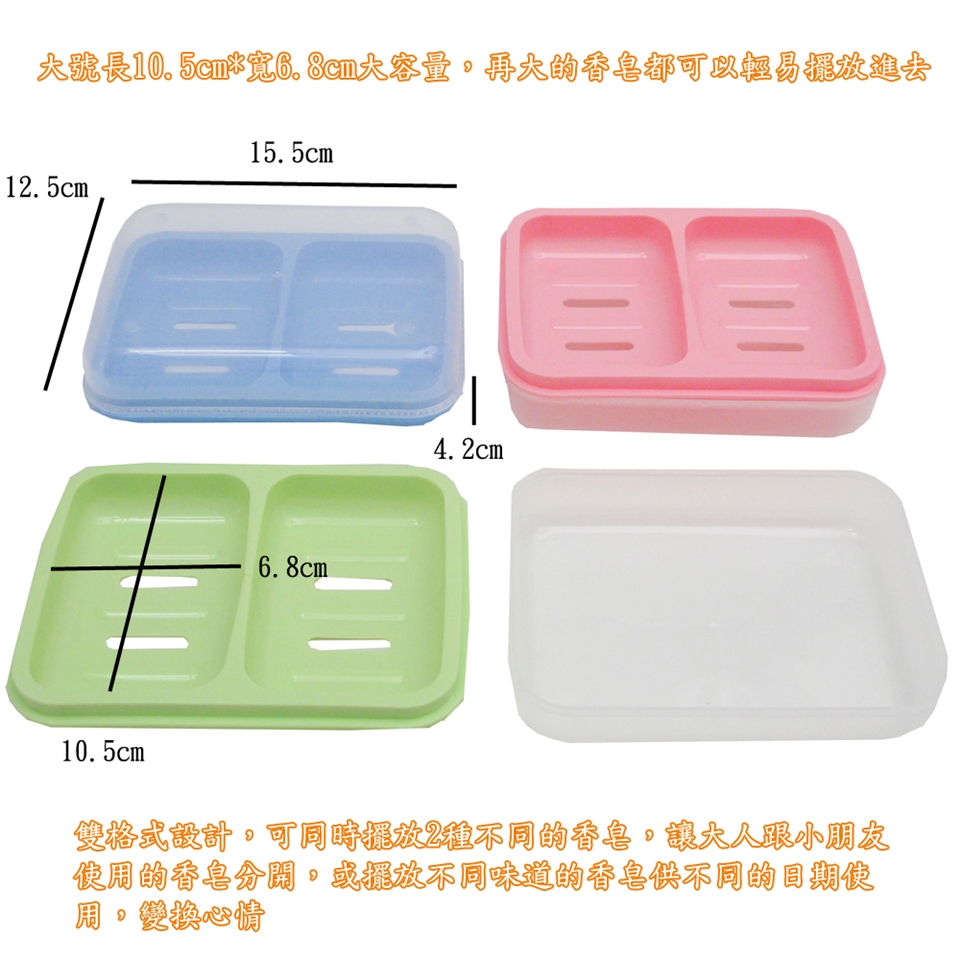 ■雙格式設計,可同時擺放2種不同的香皂,讓大人跟小朋友使用的香皂分開,或擺放不同