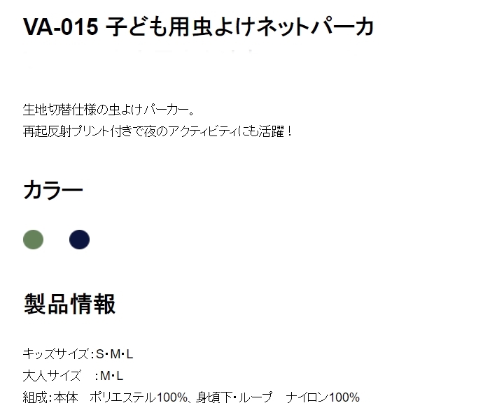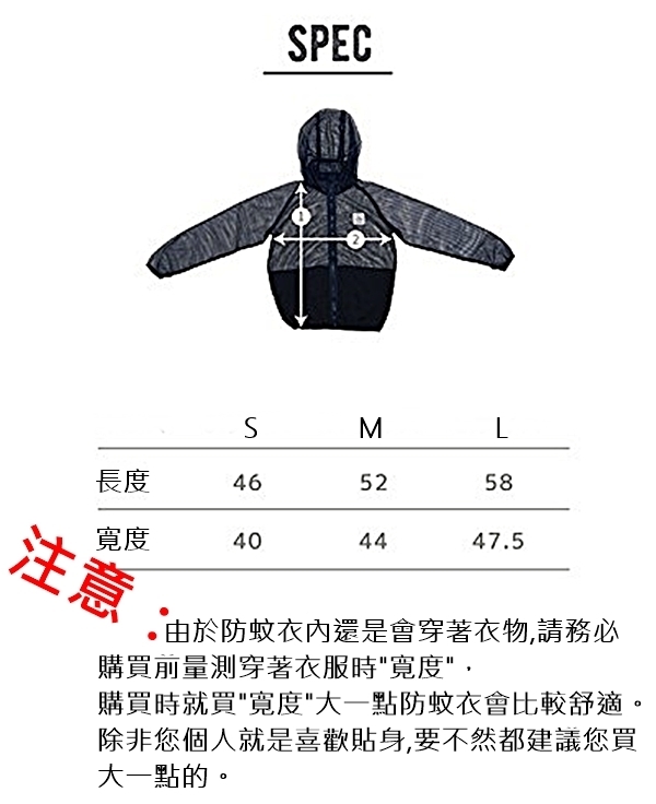 (注意:本賣場僅售防蚊衣1件,並不包含防蚊褲,若您還要防蚊褲,防蚊褲的型號是VA-017,請至其專門賣場購買。謝謝!