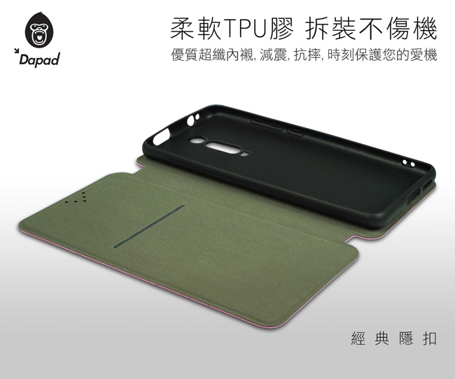 Dapad經典隱扣側掀式皮套 創新設計的完美結合,兼具手感與美觀。