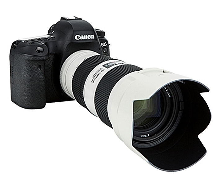 ●蓮花型罩體,看起來會更好看、更有氣勢;與是圓筒型的Canon原廠遮光罩相比,其缺點就是遮光效果沒有圓柱型的好。