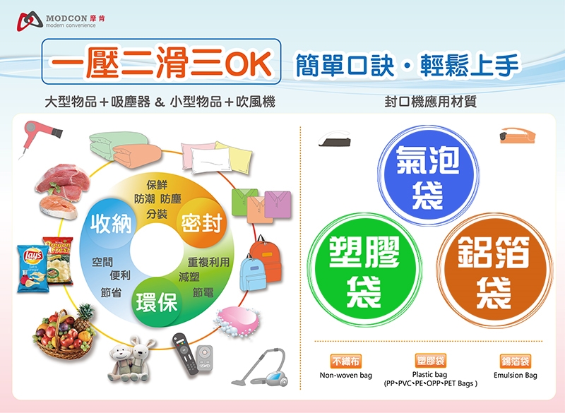 2.封口時用力緊壓壓下約三秒後向右平直移動即可達封口的效果。
