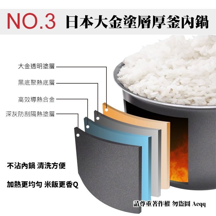 ★ 日本大金塗層厚釜內鍋,受熱更均勻