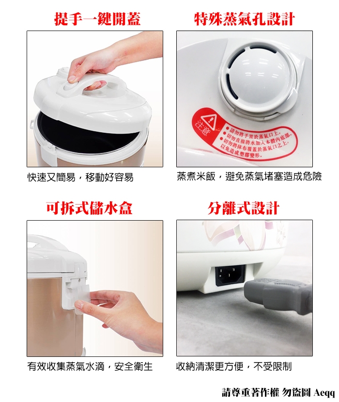 ★ 可拆式集水盒、內蒸氣蓋設計,方便好清洗