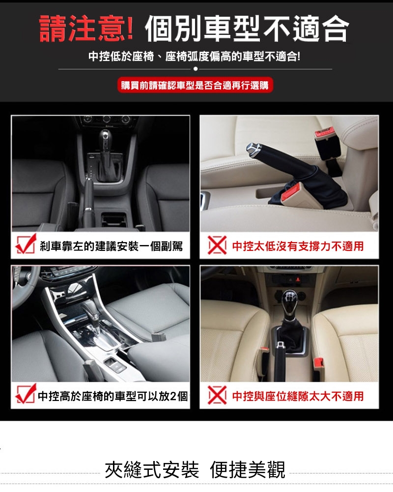 ★注意:中控低於座椅、座椅弧度偏高、中控與座位空隙太大皆不適用,請勿購買