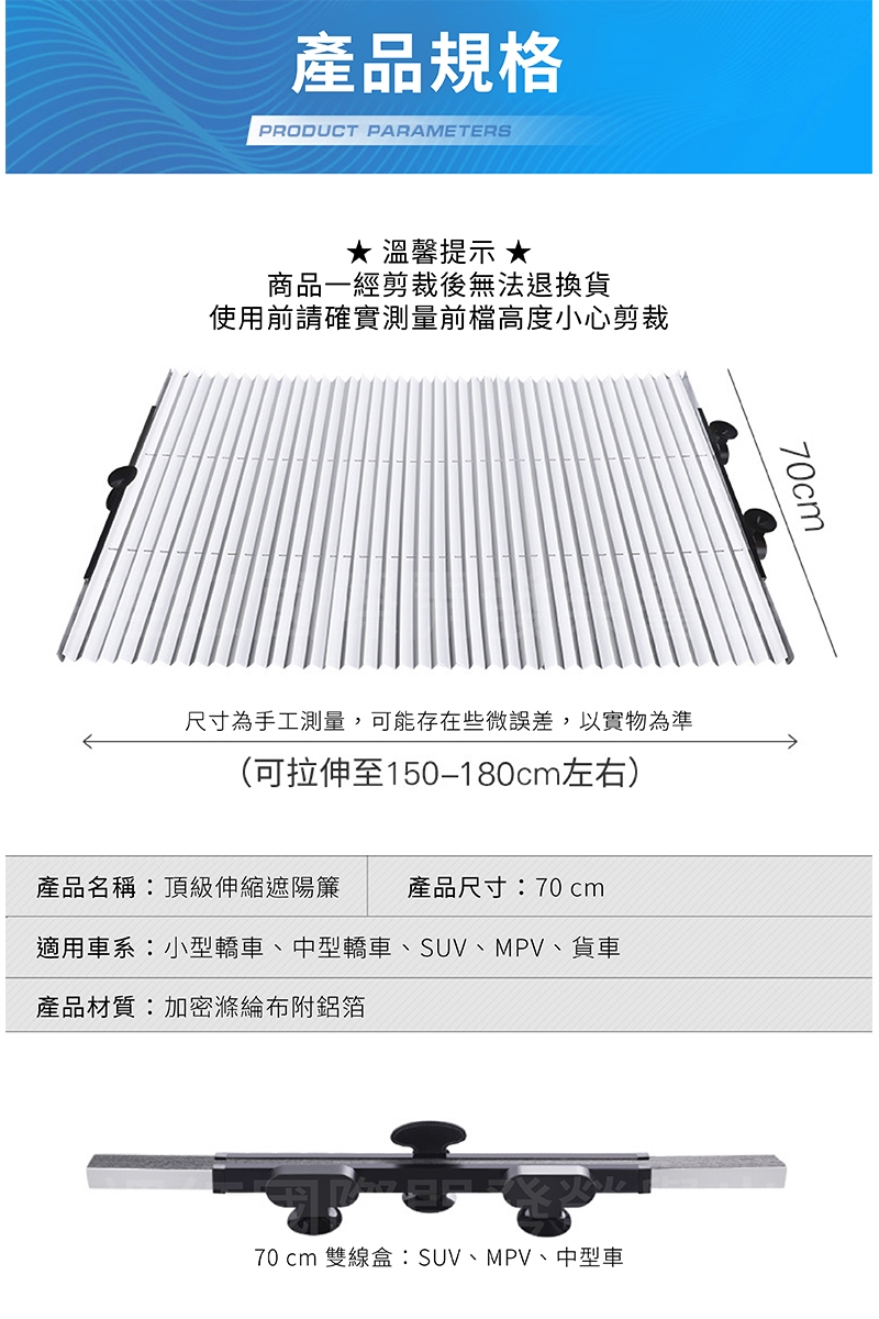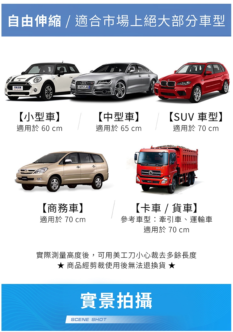 2.標準長度為70cm,適用SUV、大型轎車、貨車