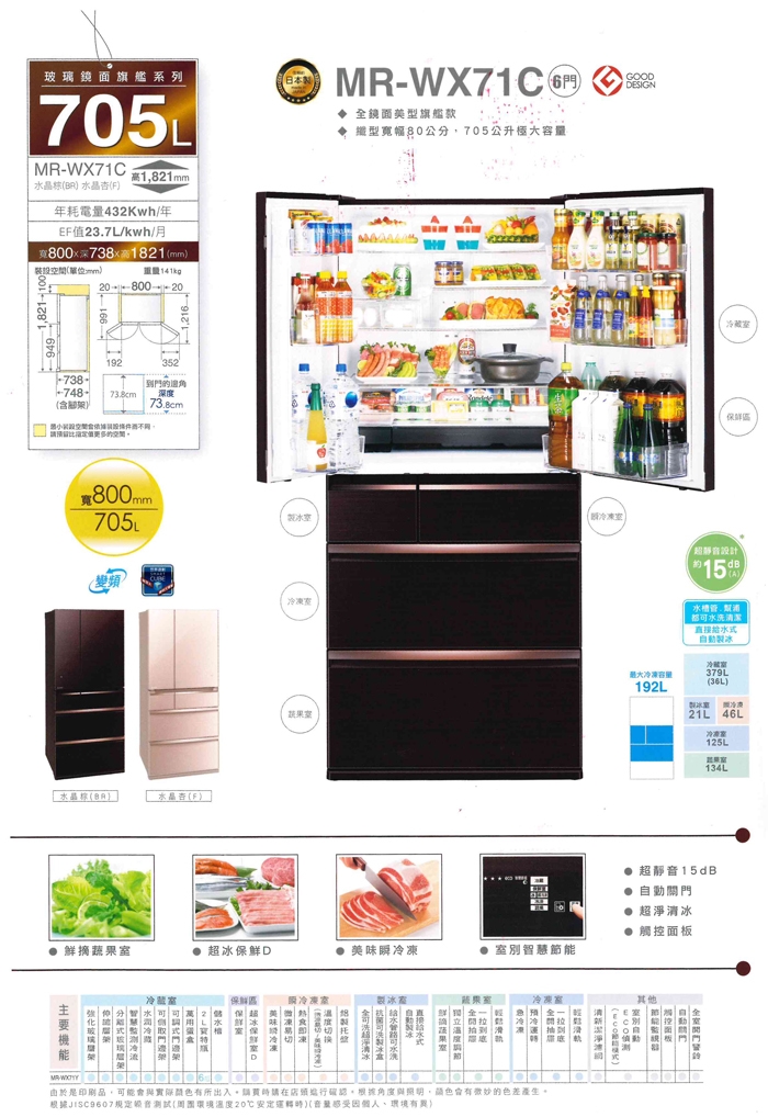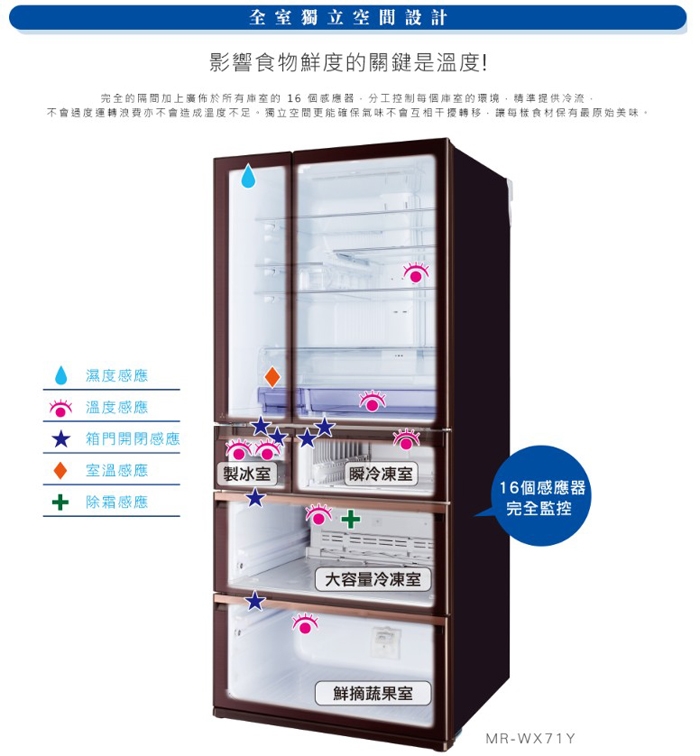 【MITSUBISHI 三菱】日本原裝705L 六門變頻電冰箱(MR-WX71C)