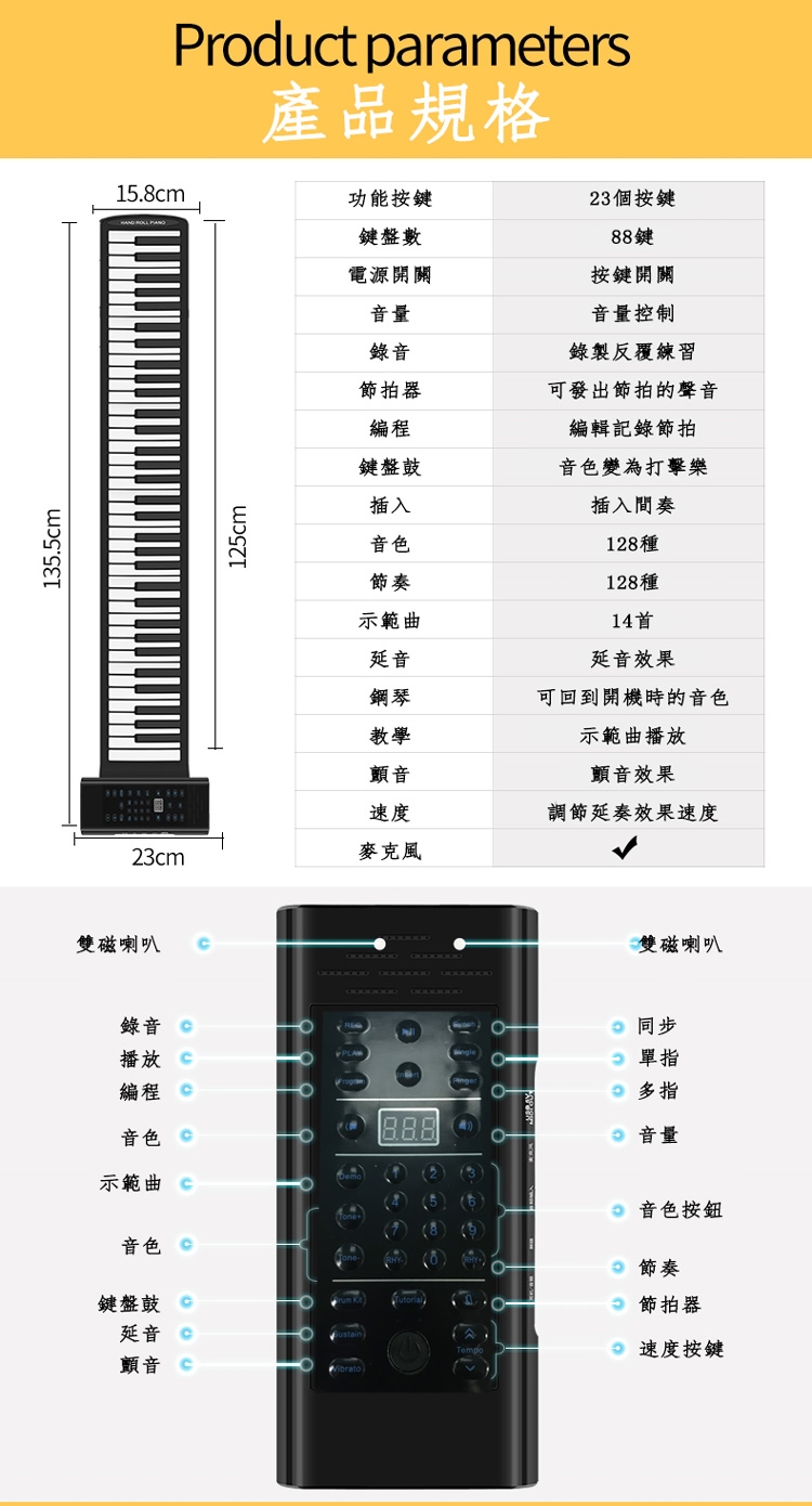 矽膠鍵盤:L1325x W140x H11mm