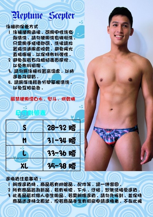 3.請勿將泳褲放置高溫處,以防退色及變質。