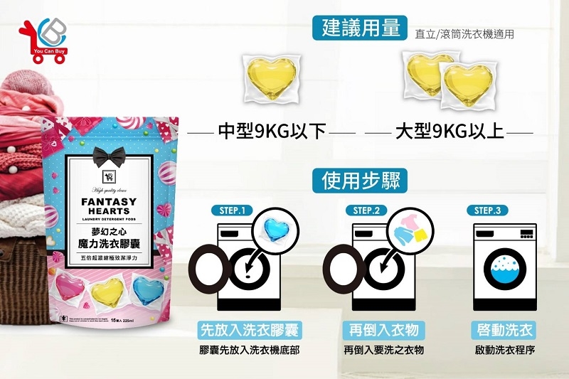 先將洗衣膠囊放入洗衣機,再倒入衣物,啟動洗衣機即可。