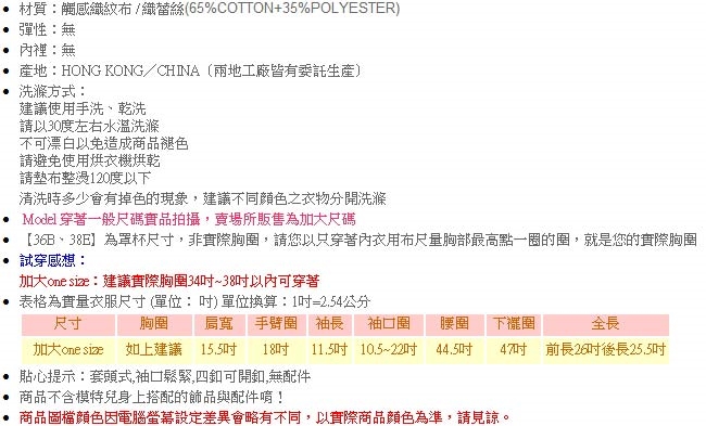 適穿胸圍38吋~48吋以內可穿