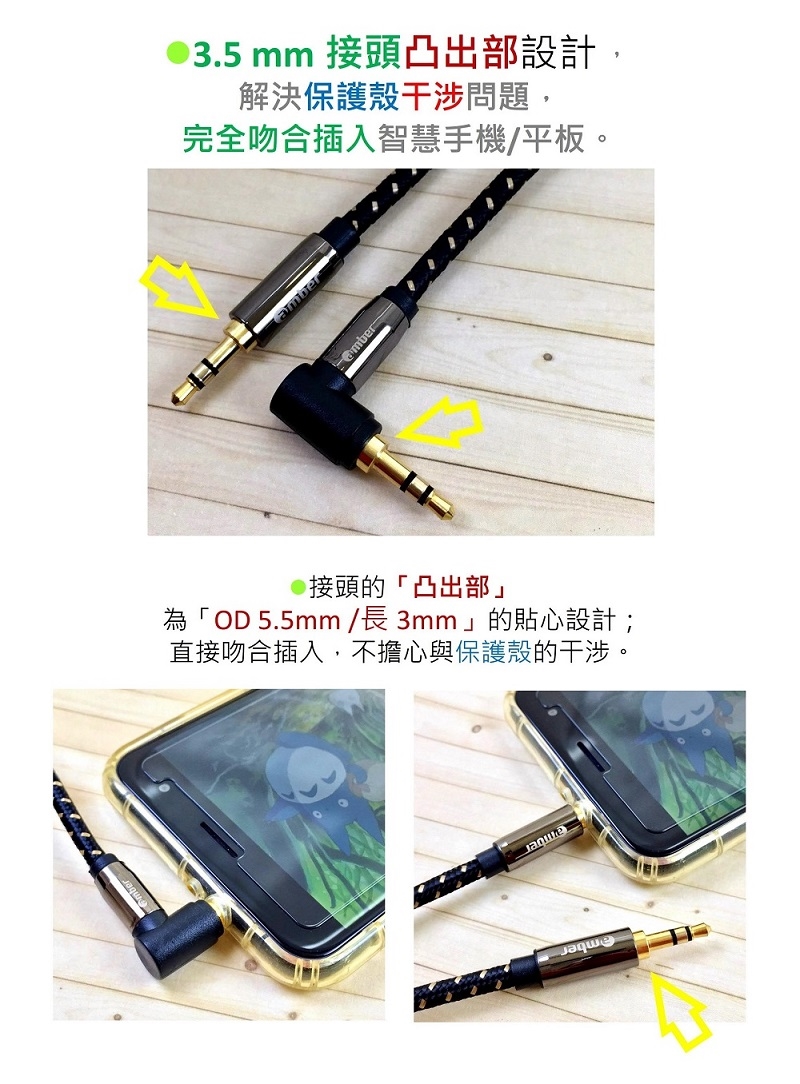 *音訊接頭、頭端採「凸出部」設計。在連結「智慧手機/平板」時,避開保護殼的厚度干涉,更便利使用。