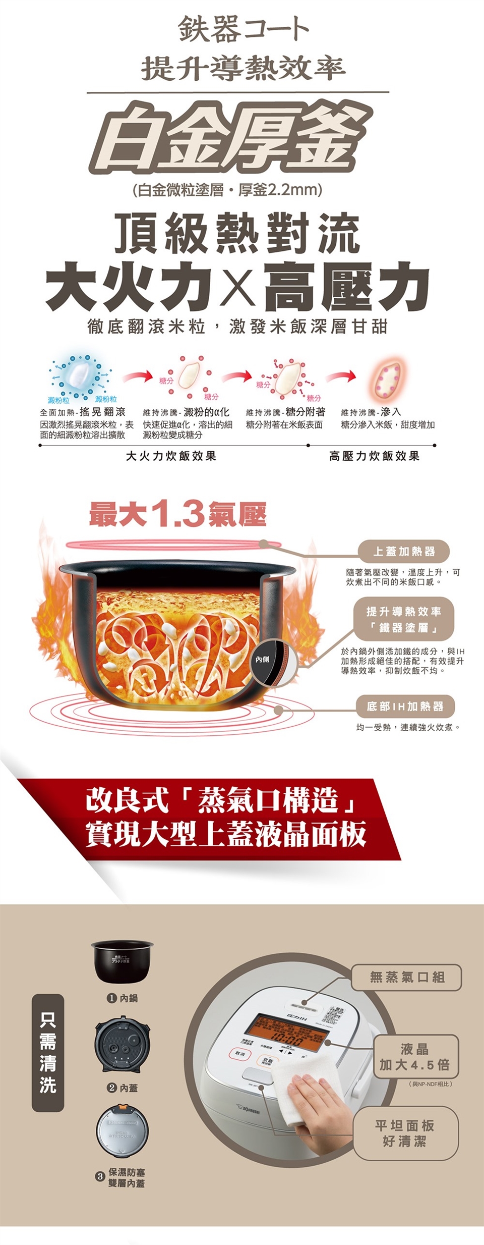 (2)「頂級熱對流」大火力×高壓力(最大1.3氣壓)徹底翻滾米粒,激發深層米飯甘甜。