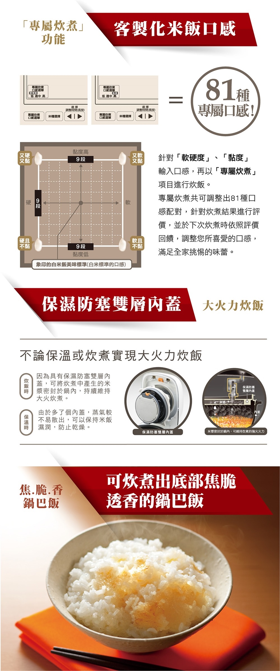 (3)「專屬炊煮」功能,量身打造獨享的81種專屬口感。