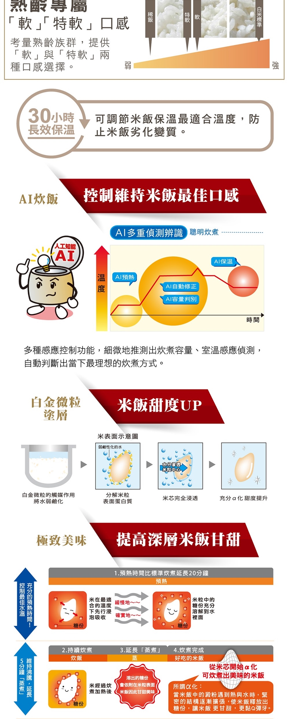 (8) 30小時「長效保溫」調節米飯保溫最適合溫度,防止米飯劣化變質。
