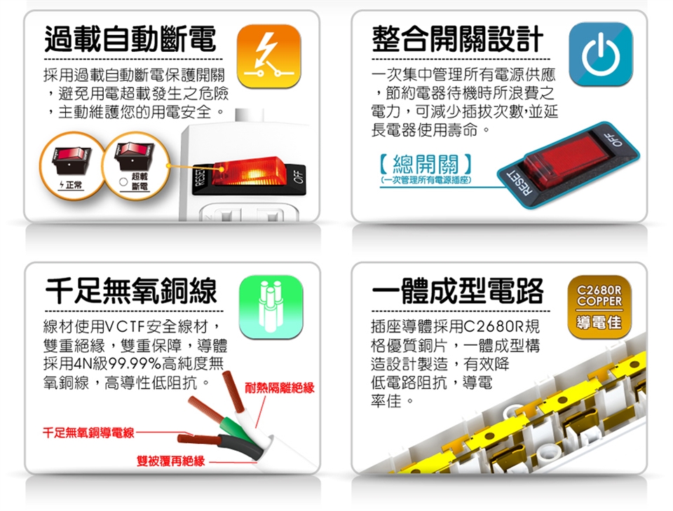 ●建議使用電器前,先確認電器開關置於關閉狀態,於開啟本產品開關後,再啟動電器,如此動作可延長電器及本產品使用壽命。