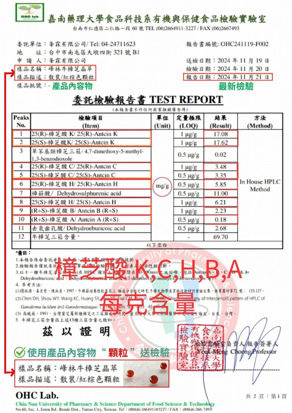 2024/11/21《 樟芝酸檢驗報告 》