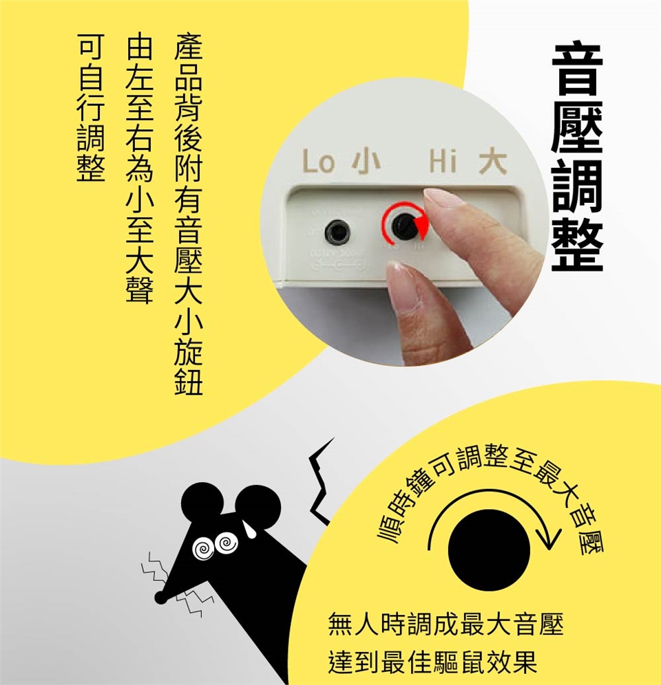 ● DigiMax★UP-11K 可依照環境與個人需求調整適合之音量,來達到最佳驅鼠效果。