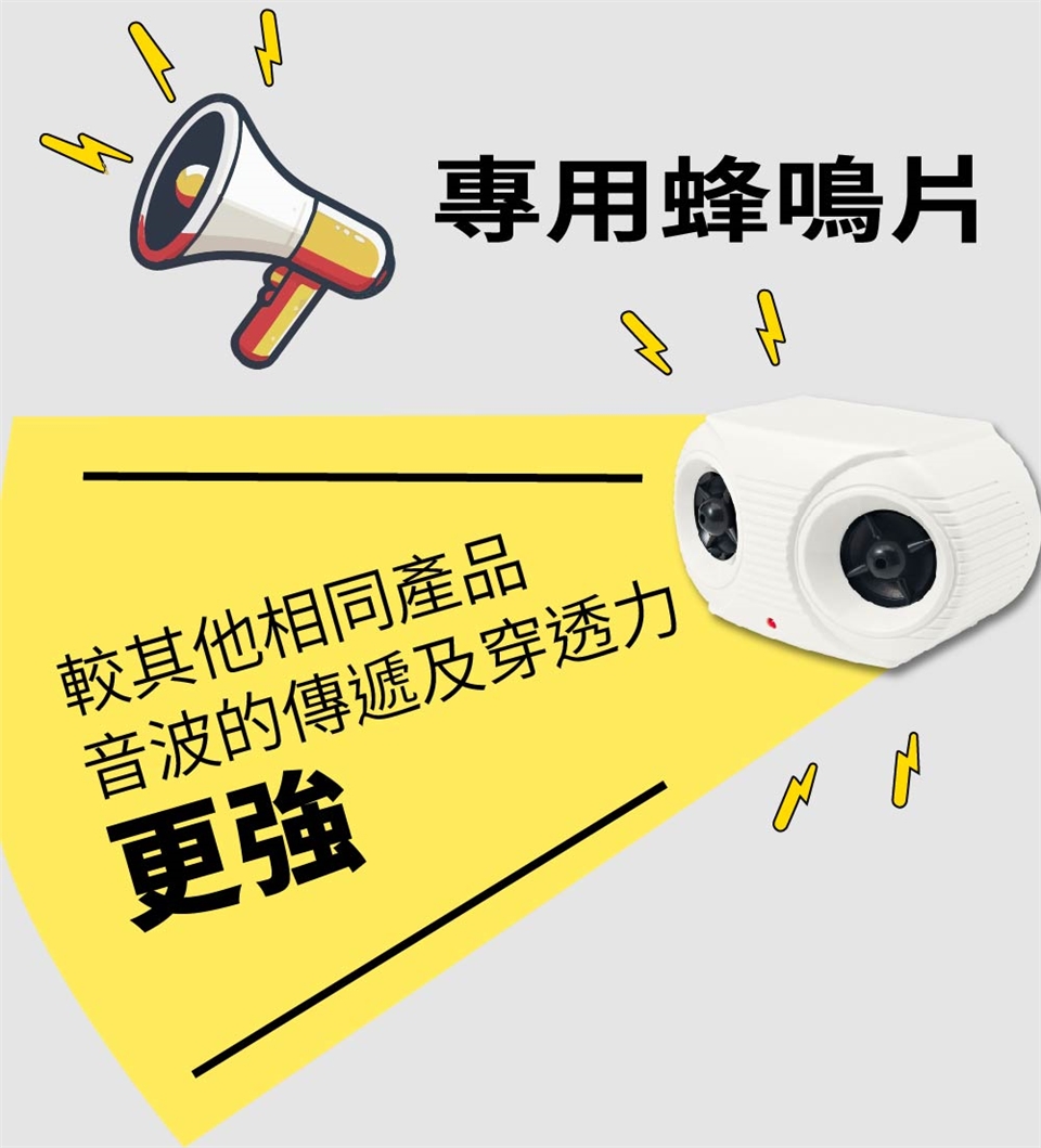 以消除驅鼠聲波死角並同時確保超音波可以抵達空間的每個角落。
