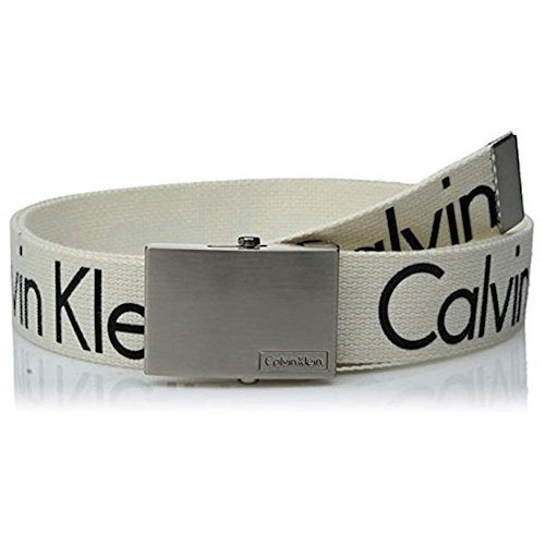 【Calvin Klein】2019男時尚LOGO標誌帆布白色皮帶