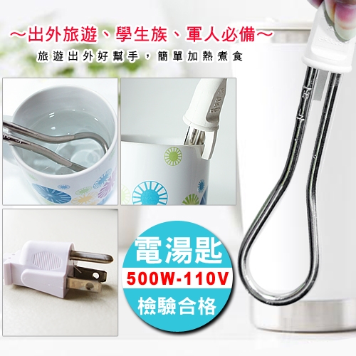 4.電湯匙浸人水中後,再插入電源使用。