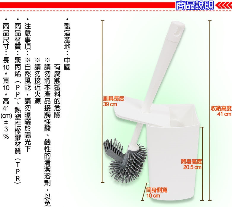 清潔方式:清水沖洗。 適用範圍:馬桶清潔。