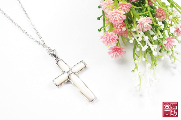 品名:精美925純銀貝殼墜項鍊☆白色十字