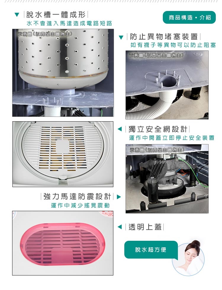 ※本脫水機僅供家庭脫衣物使用(ex:毛巾、檳榔、高麗菜..等),若作為其他用途者,