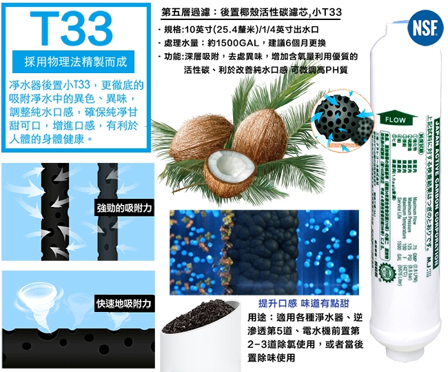 利用椰子殼的設計,能消除令人不快的味道、臭味以及沉澱物,製造出更潔淨、更清澈、口感更佳的水質。
