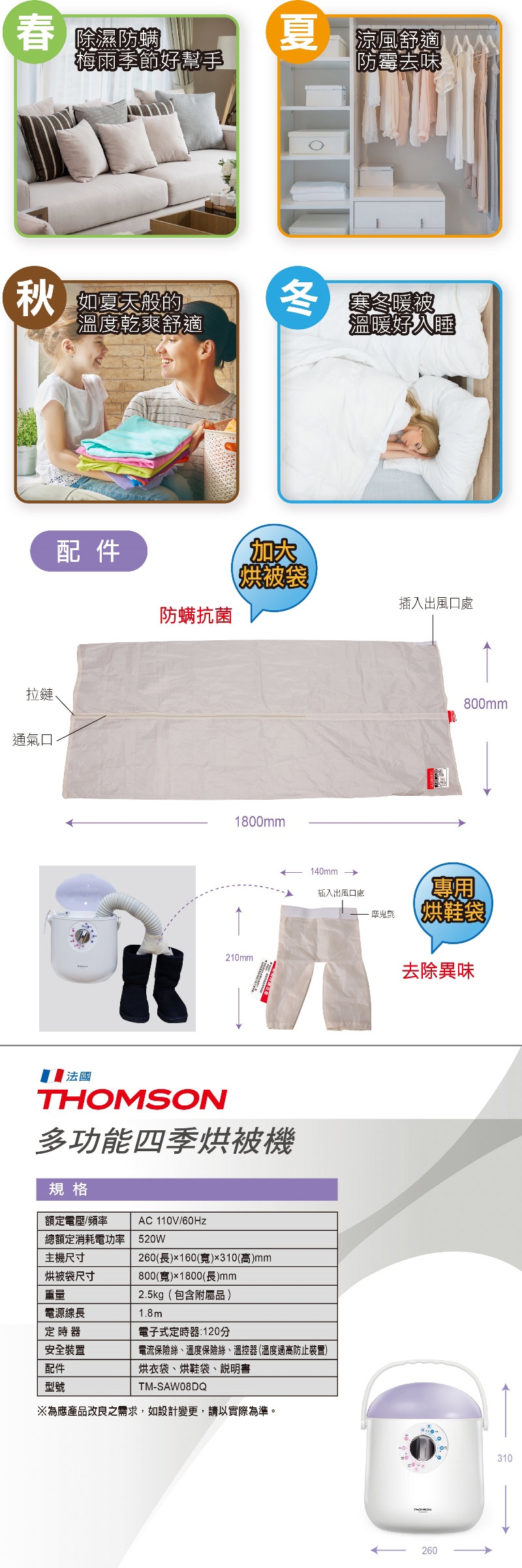THOMSON 多功能四季烘被機 TM-SAW08DQ