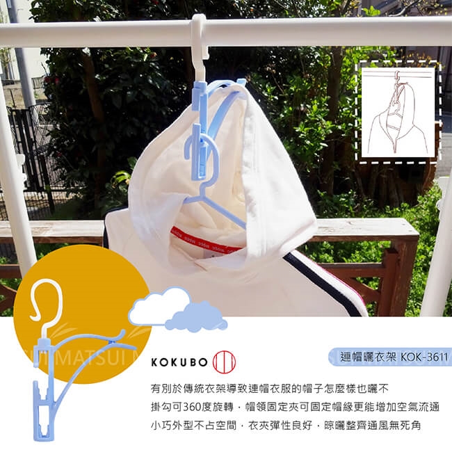 有別於傳統衣架導致連帽衣服的帽子怎麼樣也曬不乾,