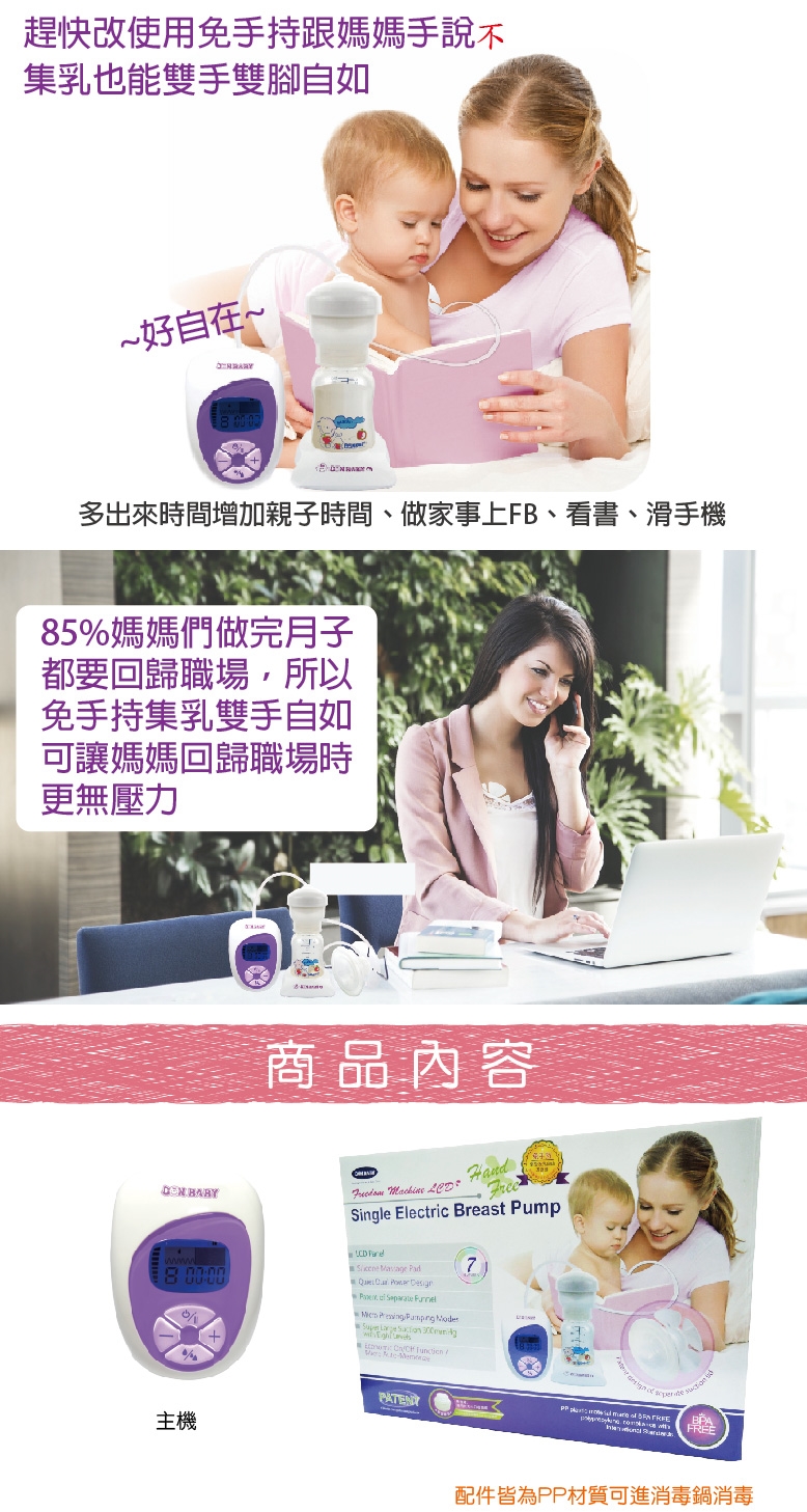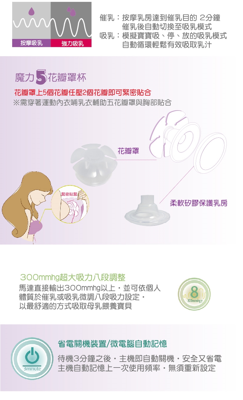 每次請先清潔胸部後再開始集乳,吸乳器主機及奶瓶勿過高過,以防乳汁無法流入奶瓶